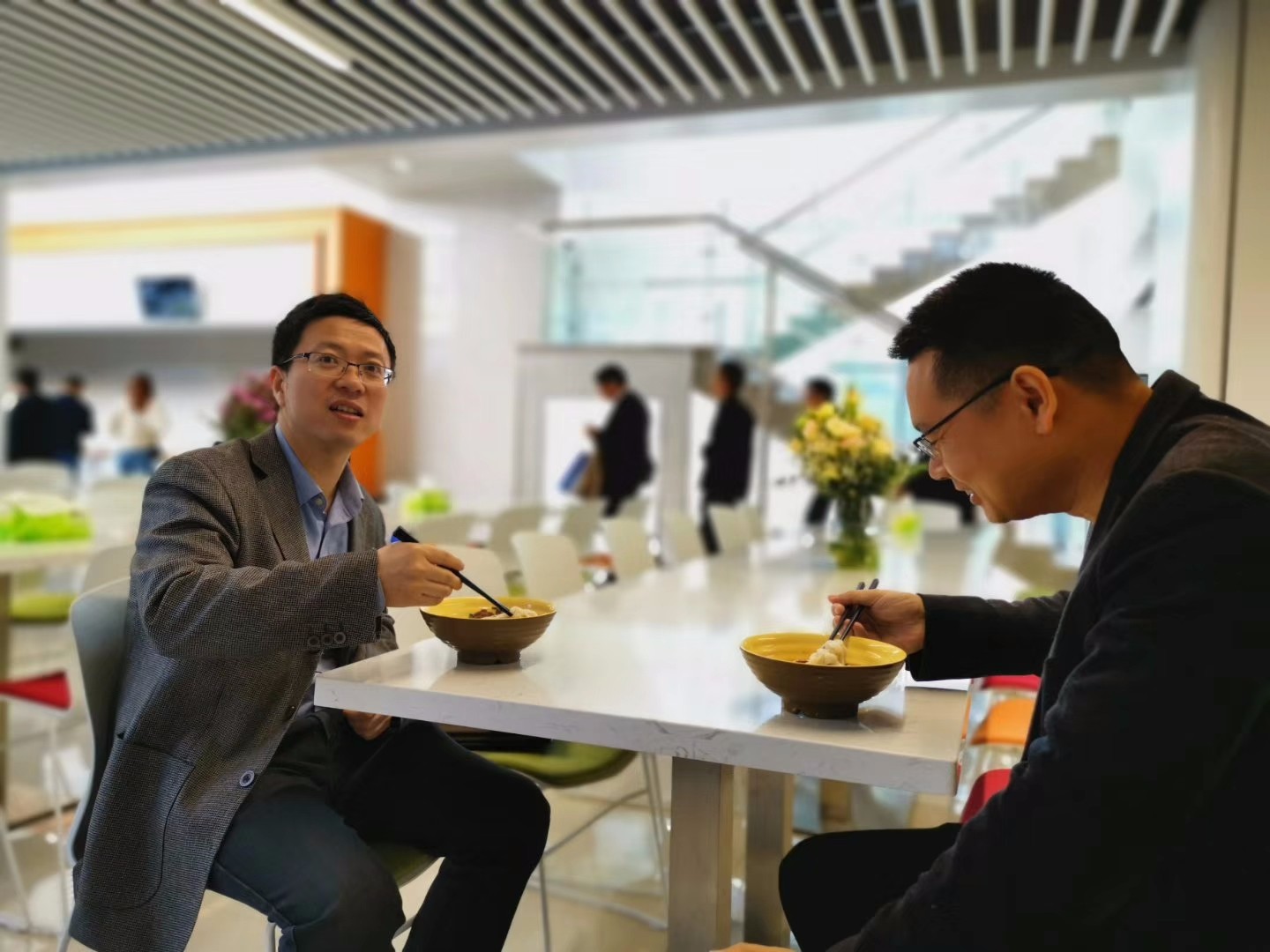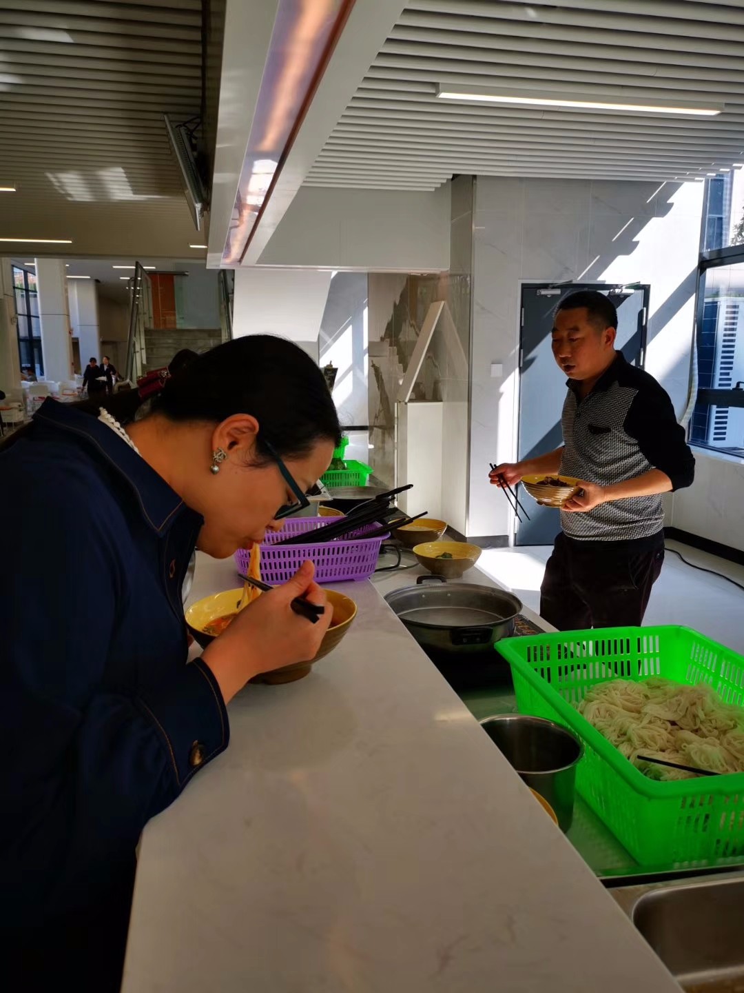 就餐時間,授課導師及培訓成員們積極試吃鮮米粉,“您是吃圓的還是扁的?”不管成員們提出什么形狀的粉,換上出料板,立刻解決。基準設計與粉巢食品共同研發的專利冷熱交換系統,既提高了工作效率,也減少了消費者的等待時間。